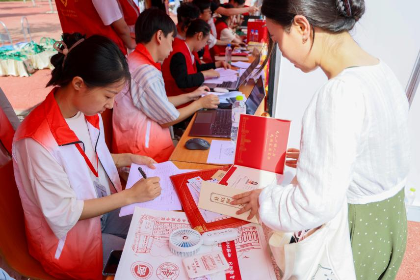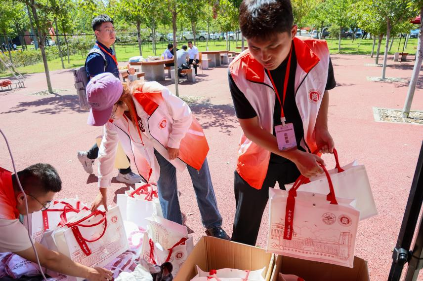 组织了本硕100余名志愿者有序轮值,在现场进行地点引导、资格审查、入学资料领取、个人信息登记、发放校园卡、行李搬运等工作,为新生创造良好的入学环境。
