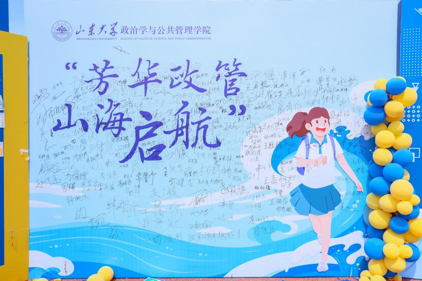 在本次迎新中别出心裁地设置了“芳华政管、山海启航”签名墙,完成报到流程后,同学们可以在签名墙上留下自己的姓名,标志着他们正式成为一名政管人,也可以和家长一起在签名墙前合影留念,定格下成为“政管人”、成为“山大人”的美好时刻。同时,足球比分90