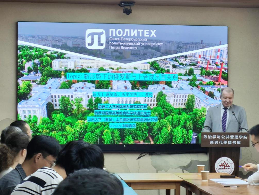 讲座伊始,Sergey Nikolaevich Pogodin教授分享了上海合作组织国家在区域一体化过程中的历史性事件,通过对上合组织成员国在经济发展中的成就进行对比分析,指明了在全球化背景下,区域经济一体化作为国际经济关系发展的重要趋势。通过比较分析各国经济指标的变化,他指出,深化经济一体化对于国家间互利关系的发展至关重要。Sergey Nikolaevich Pogodin教授进一步阐述了俄罗斯凭借其军事力量、资源储备和能源生产等优势,在上合组织扩张和建立多元化、多极世界中所扮演的“成功谈判者”角色,强调了尊重各国文化和领土完整对于发展和深化欧亚国家间互利关系的重要性。