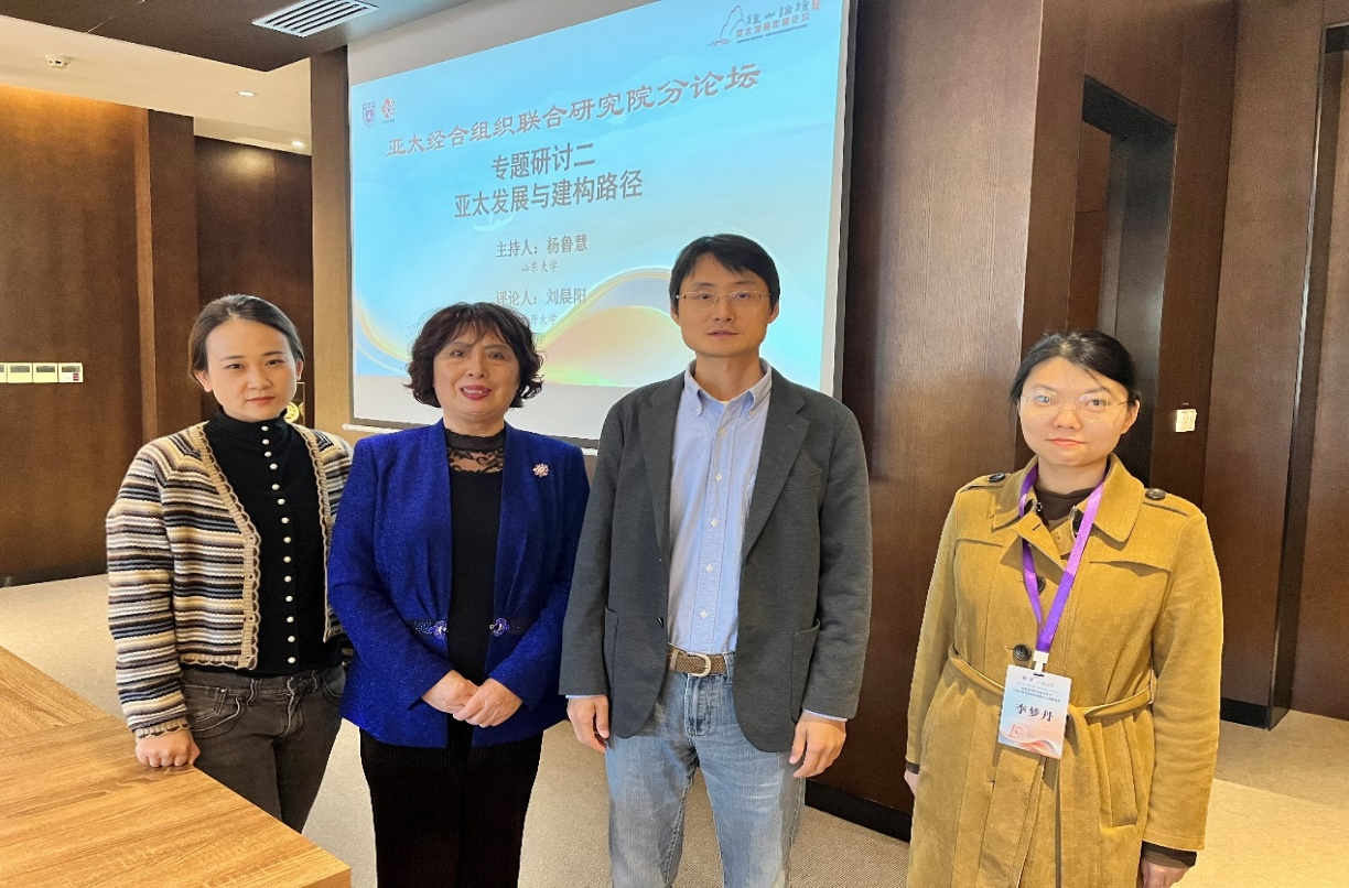 本届“钟山论坛·亚太发展年度论坛”设置了多个主题分论坛,涵盖了“亚太国际关系”“国际传播”“区域国别学”“亚太经合组织发展”“现代国家治理”“亚太社会文化”等领域,同时还设有“第一届国际问题跨学科青年论坛”。山东大学亚太研究所的代表们参加了“亚太经合组织联合研究院分论坛”和“国际问题跨学科青年分论坛”的研讨,亚太所所长杨鲁慧教授做了百年变局下的亚太区域安全合作新趋势的会场发言,并主持了分论坛“亚太发展与建构路径”的专题研讨会。赵玙佳副所长、钟诚副所长和李梦丹助理研究员分别围绕中国式现代化、东亚人文共同体建设和东北亚亚太经济合作做了会议发言。在本次论坛上,亚太所参会代表同与会场嘉宾及学者们展开了富有成效的互动交流,对亚太所今后的学术研究,人才培养和科研积累有较大的促进作用。