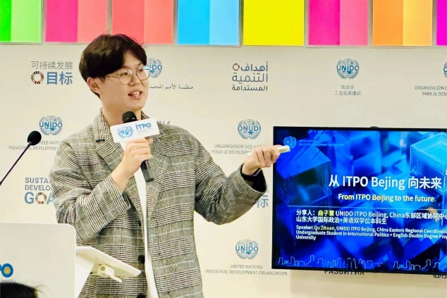 国际政治+英语双学位本科生、UNIDO ITPO Beijing, China东部区域协同中心见习志愿者曲子寰分享了东部区域协同中心重要项目筹备工作和日常运营工作内容,并介绍了作为见习志愿者参与UNIDO ITPO Beijing, China与各地方办公室协同工作的心得体会。