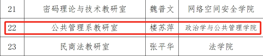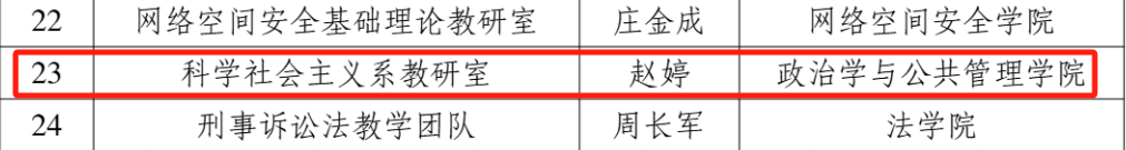 副院长、科学社会主义系系主任赵婷获评“山东大学优秀基层教学组织负责人”。这是继2022年度公共管理系教研室荣获“山东大学优秀基层教学组织”,公共管理系主任楼苏萍老师获评“山东大学优秀基层教学组织负责人”后,足球比分90