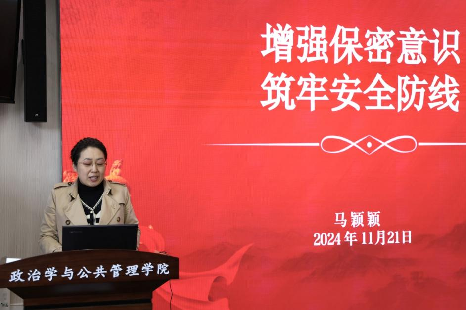 “增强保密意识,筑牢安全防线”为本次培训会的主题,马颖颖老师首先深入解读了《中华人民共和国保守国家秘密法》等法律法规,从国际国内形势分析了保密工作的重要性、严峻性和复杂性。随后从秘密的基本概念等多个方面进行了详细讲解和说明。最后,她强调保守国家秘密是每个公民的义务,大家应树立起“国家利益高于一切,保密责任重于泰山”的意识。