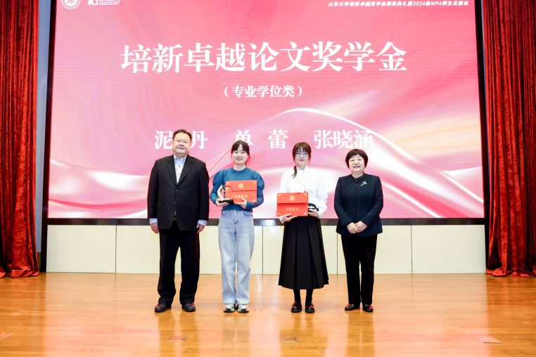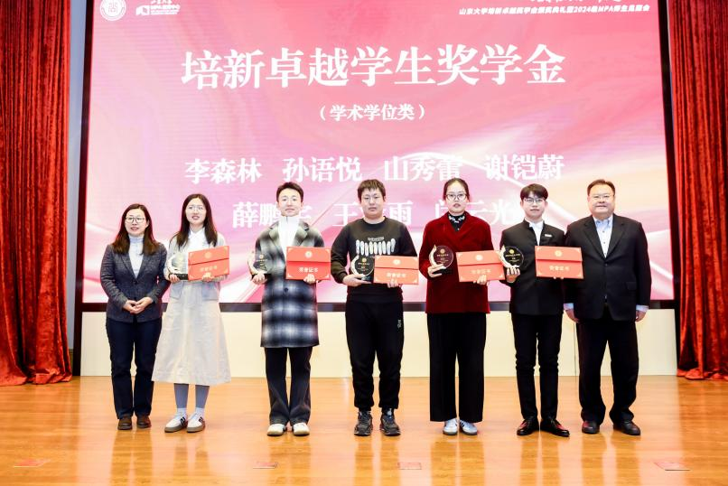 山东大学培新卓越奖学金是由培新集团捐赠,旨在支持山东大学教育事业的蓬勃发展,培养具有爱国情怀、社会责任感、专业水平突出和创新精神的公共管理人才。本年度 33 名同学获奖。此次颁奖典礼肯定了获奖学生成绩,彰显培新集团对学校学科建设与人才培养的推动作用,又逢山东大学 MPA 教育办学二十周年,该奖学金将为其高质量发展强力赋能。