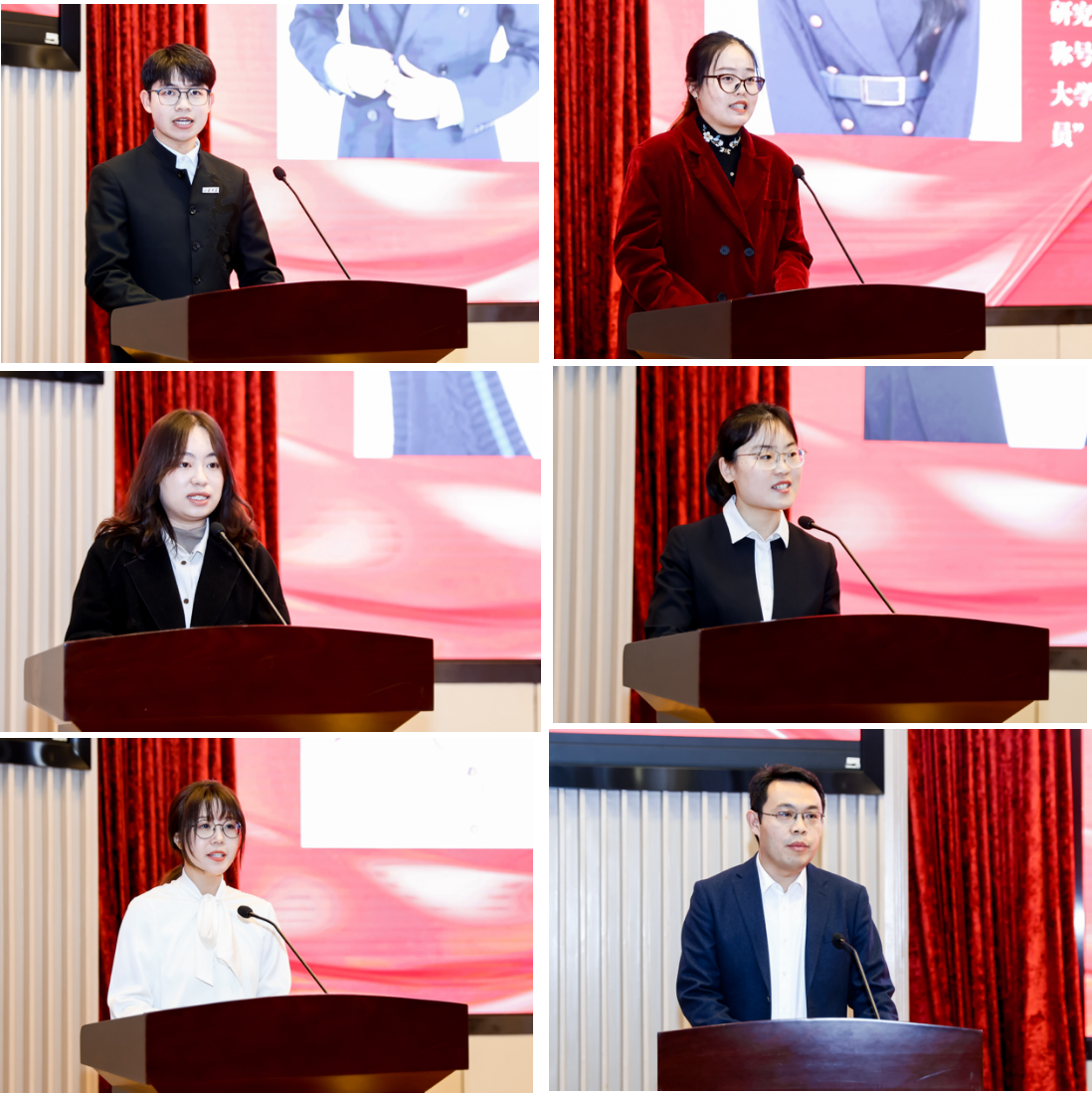 在学生代表发言环节,2021级行政管理专业本科生谢铠蔚、2022级政治学理论专业硕士研究生王泽雨、2024级 MPA研究生辛悦、2023级MPA研究生孟玥、2021级MPA研究生张晓涵以及 2022级MPA研究生刘明磊等六位同学依次发言,他们从各自的角度分享了在学业追求、团队协作、个人成长等方面的感悟与思考,展现出山大政管学子立志成才、报效国家的责任担当的深刻理解。