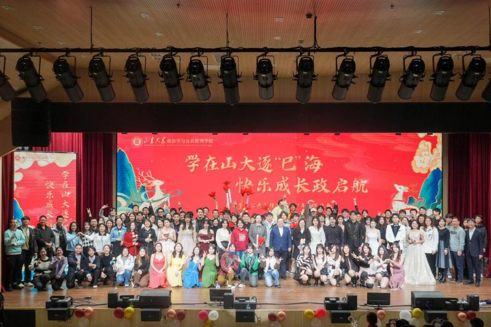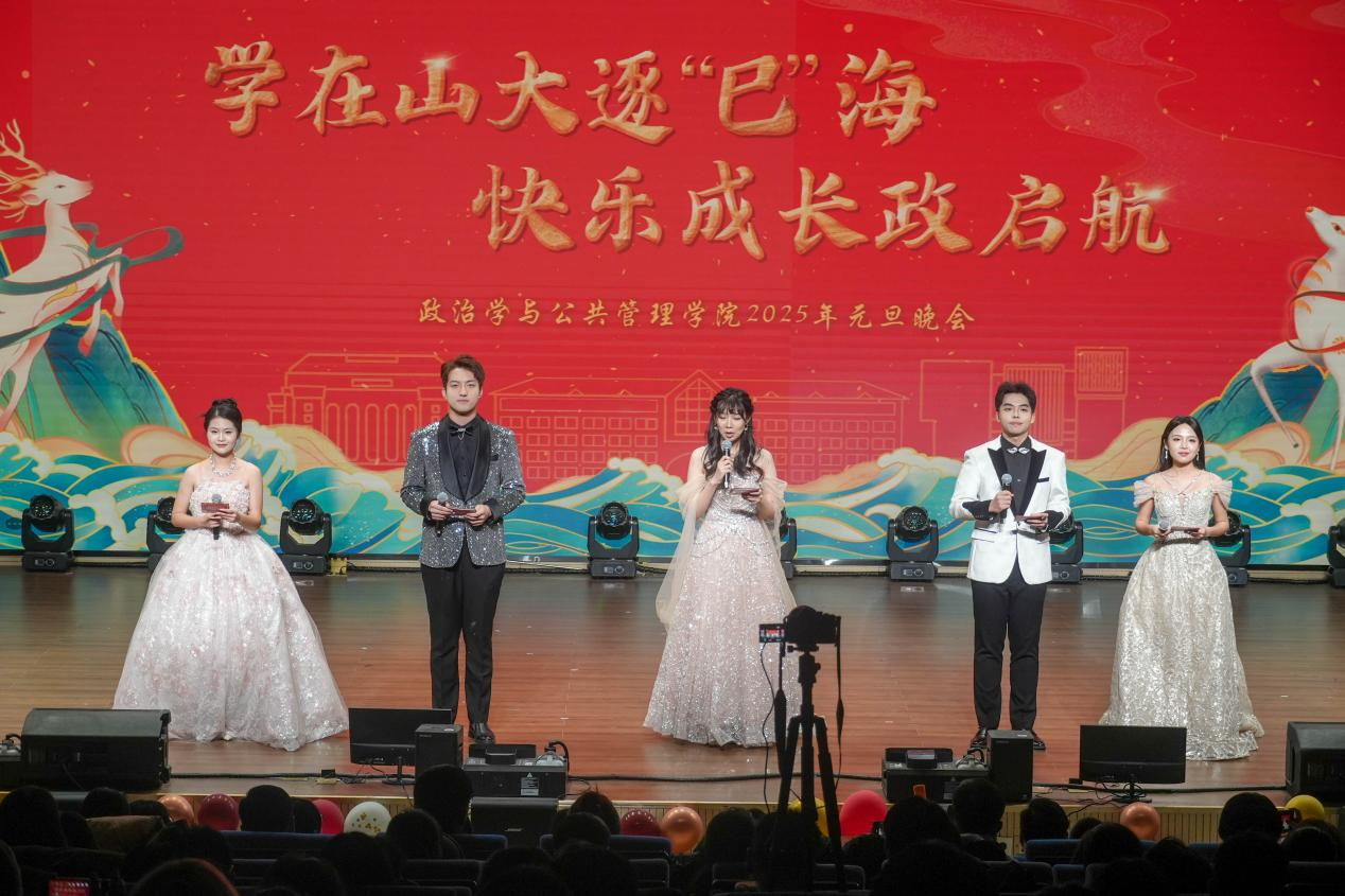 本场晚会共分为“鸿鹄志:山大启航,向阳而生”“浩然气:政管风华,鸾翔凤集”“家国梦:山大担当,共铸华章”三个篇章。演出内容涵盖了歌曲、舞蹈、器乐演奏、相声、朗诵等多种形式。在节目表演以外,本次晚会还设置了三轮抽奖环节,同学们积极参与,掌声、欢呼声此起彼伏。在第一篇章中,由教师代表王之夏、马腾俊带来的歌曲《你是我心内的一首歌》旋律动人、浪漫温馨;群口相声《五脏休假》包袱频出、幽默诙谐;舞蹈《onespark》活力四射,洋溢青春气息;由足球比分90
