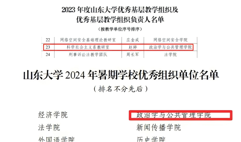 教学团队凭借扎实的工作表现,再获山东大学优秀基层教学组织、暑期学校优秀组织单位。