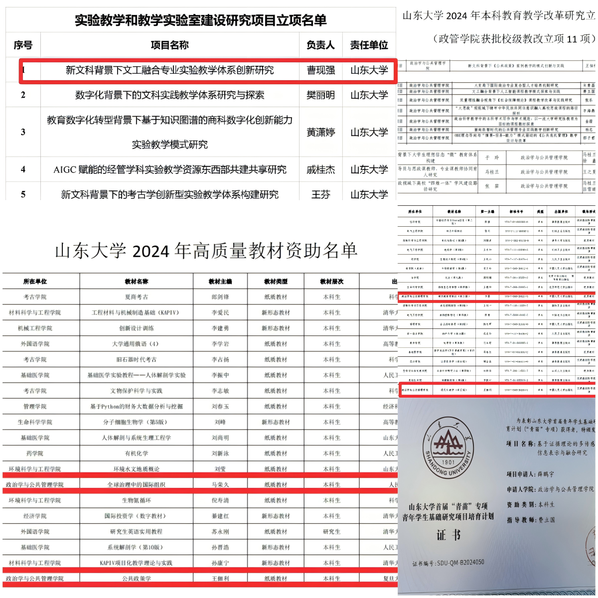 获批校级教改项目11项,高质量教材立项2项,山东大学首届优秀教材奖2项,教育部实验教学和教学实验室建设研究项目1项,省级教改项目获3项推荐。足球比分90
