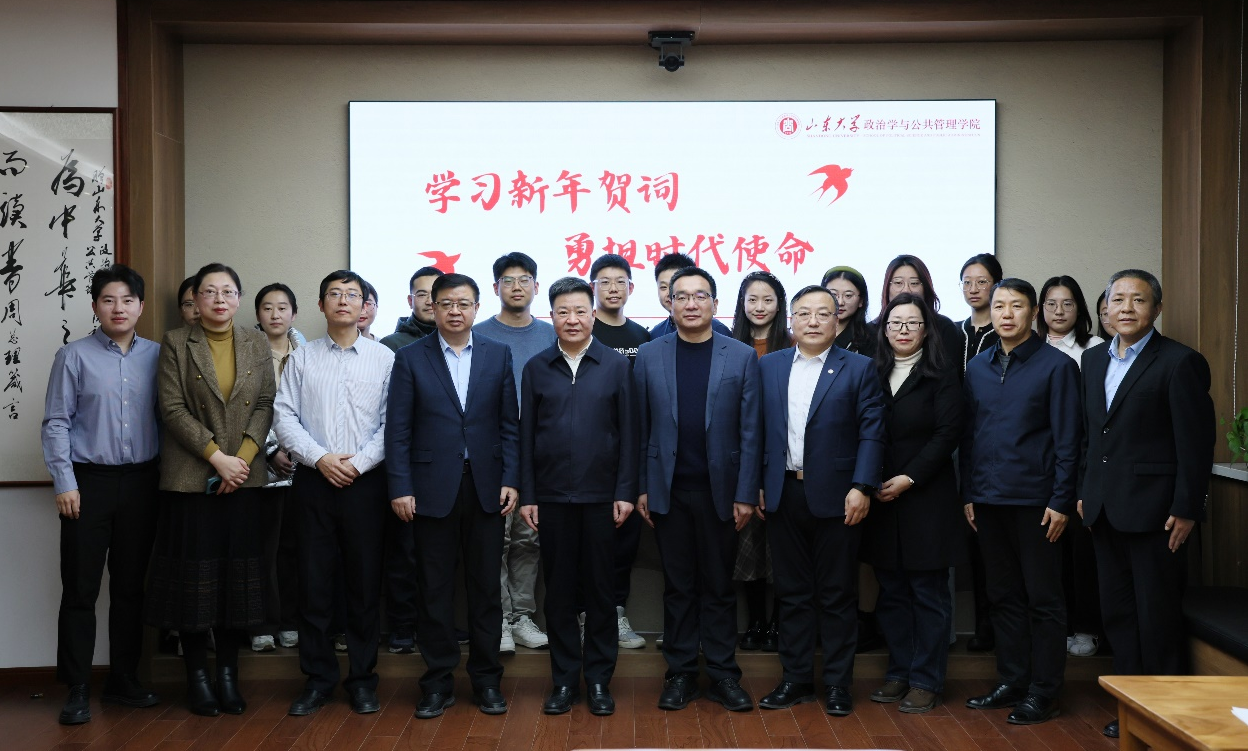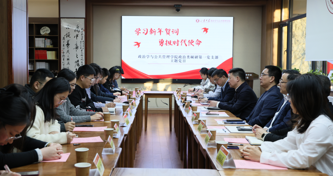 政治类硕研第一党支部“学习新年贺词 勇担时代使命”主题党日活动在华岗苑南楼新时代美德书屋举办。山东大学党委常委、副校长朱德建参加活动并与同学们座谈交流。