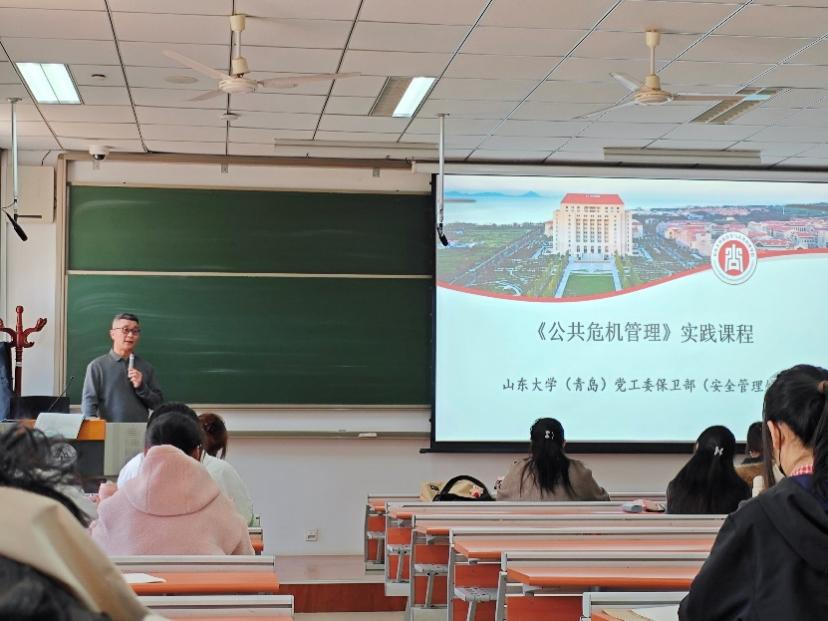 《公共危机管理》本科生课程在山东大学(青岛)校区举行实践课程活动。此次活动邀请了校区党工委保卫部(安全管理处)副部长金鑫老师和范辉老师,为课程师生详细介绍了青岛校区的应急管理工作,进一步深化了学生对应急管理理论与实践相结合的认识。