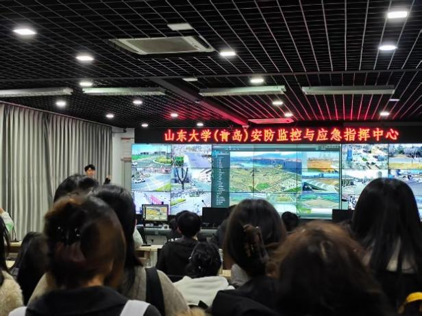 在互动环节中,学生们结合前期参与的校园风险评估实践,与金鑫老师就校园内存在的交通安全、消防安全等问题进行了深入交流。活动的最后,课程师生一行参观了山东大学(青岛)安防监控与应急指挥中心。范辉老师向同学们详细讲解了校区智能监控系统的实际应用,让同学们进一步了解了现代科技在校园安全管理中的重要角色。