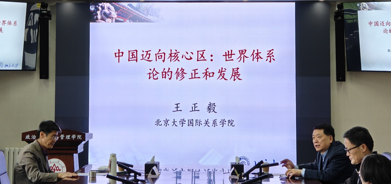 王正毅教授围绕“世界体系与国家兴衰”“资本积累与地缘政治”“世界体系的空间结构和国家特性”“世界体系的周期与趋势”四个部分展开学术讲座。讲座伊始,王正毅教授首先梳理了世界体系论的发展脉络,以理论溯源的方式铺陈全场。接着王正毅教授以人类社会命运的“三问”切入:为何有的国家兴起、有的国家衰落?为何有的国家富裕、有的国家贫穷?为何有的国家强、有的国家弱?然后,王正毅教授以详实的数据资料和严密的逻辑系统阐释了世界体系的发展演变及其与中国的关系,强调世界体系受资本积累和地缘政治两大因素影响,具有核心区-半边缘区-边缘区的结构性特征,还存在一定的周期和趋势。