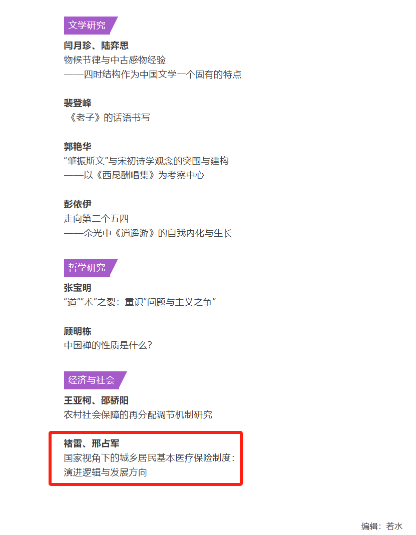 近日,山东大学智慧国家治理实验室研究员褚雷、主任邢占军教授团队在《清华大学学报》(哲学社会科学版)2025年第3期发表学术文章《国家视角下的城乡居民基本医疗保险制度:演进逻辑与发展方向》。