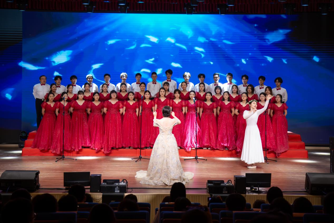 师生同台,以饱满的热情、专业的水准和默契的配合,演绎了《世界赠予我的》和《在灿烂的阳光下》两首曲目。《世界赠予我的》歌声温暖治愈,唱出对生活馈赠的感恩,各声部和谐交融,如潺潺溪流滋润心灵;《在灿烂的阳光下》则以激昂旋律,诉说对党的赞颂与热爱。