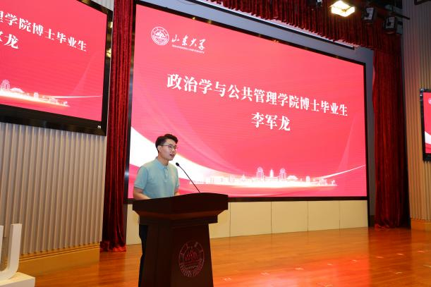 博士毕业生李军龙作为代表发言。