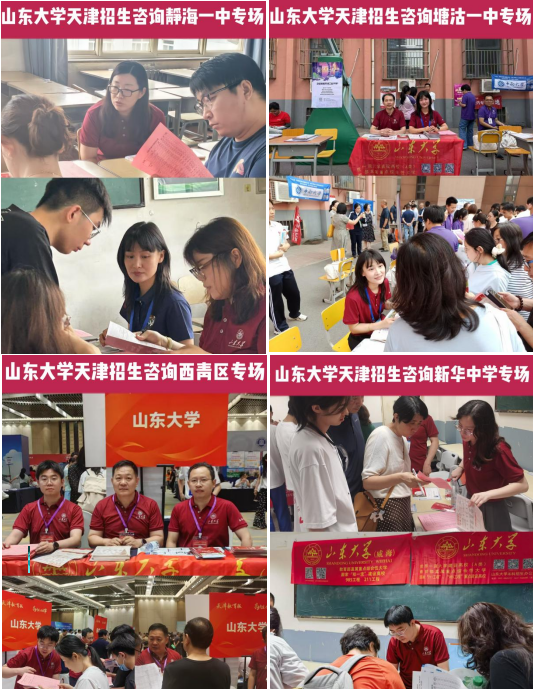 招生拓展工作组一起,先后走访了天津市南开中学、天津一中、耀华中学、新华中学、实验中学等重点中学,与校领导、高三班主任及学生代表进行深入交流。工作组详细介绍了山东大学的办学历史、学科优势、人才培养特色,吸引了众多高分考生及家长关注。此外,工作组还通过设立咨询台、发放招生手册等方式,为考生提供一对一报考指导,帮助考生科学规划志愿填报。