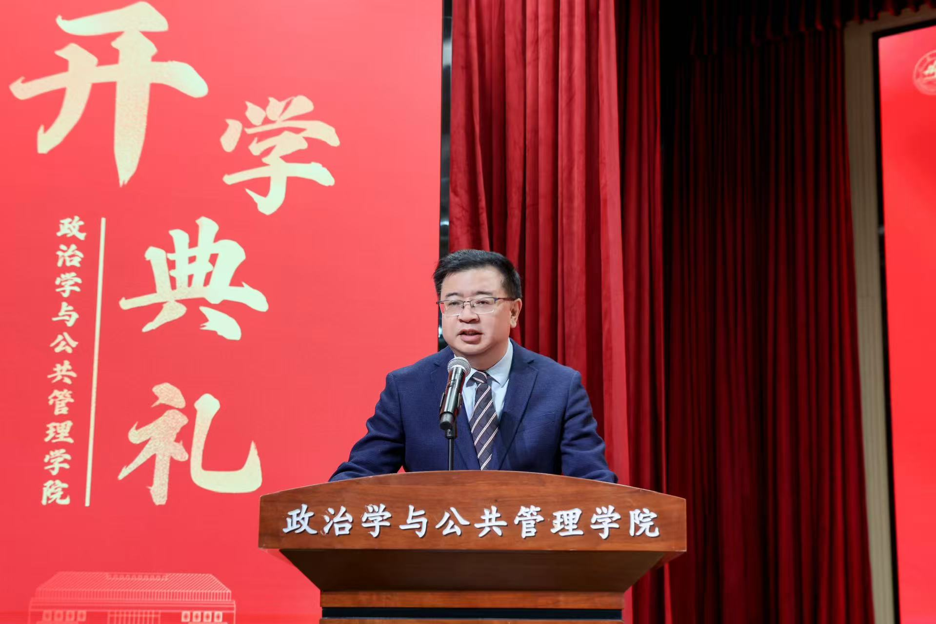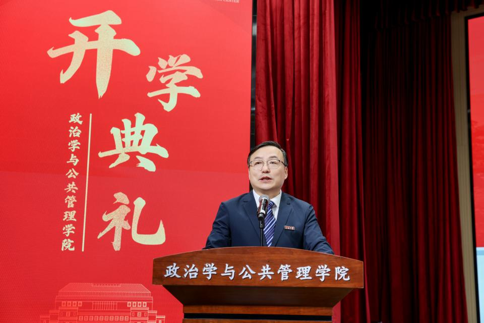 对2025级812名新生的到来表示热烈欢迎,并向步入人生新阶段的同学们提出了三点殷切希望:一是要培育良好心态,以合作包容的态度应对挑战,以海纳百川的胸怀接纳不同观点,在交流互鉴中共同成长;二是要深耕专业素养,练就治国理政的本领,既要“仰望星空”思考时代命题,也要“脚踏实地”掌握扎实本领;三是要坚持知行合一,走好服务社会的道路,带着问题实践,把理论变成解决实际问题的能力。