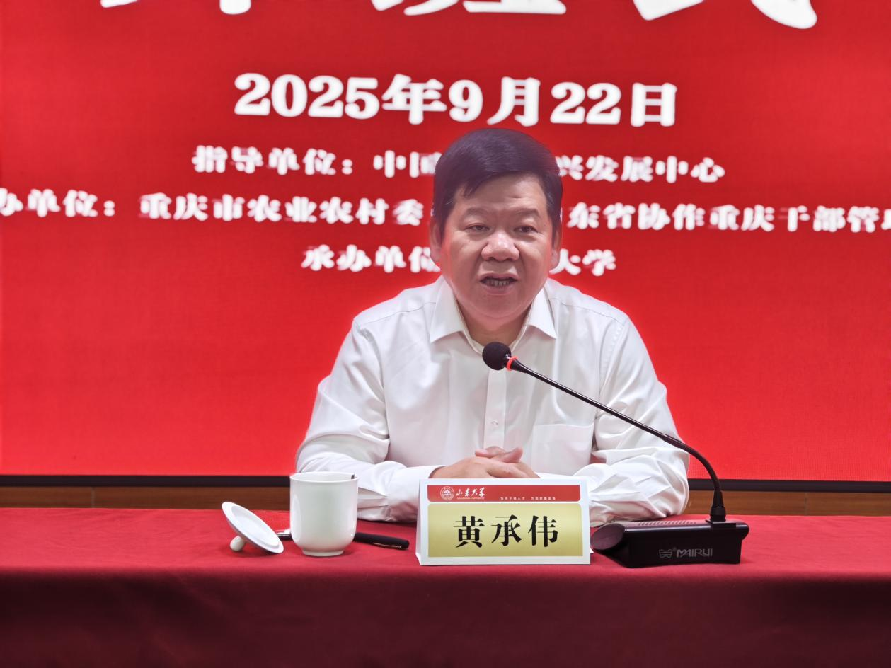 承办。中国乡村振兴发展中心主任、二级研究员、乡村振兴专家咨询委员会委员黄承伟,山东大学常务副校长吴臻参加开班式并讲话。开班式由山东省协作重庆干部管理组党委委员、综合协调组组长,重庆市农业农村委员会区域协作促进处副处长刘泽升主持。