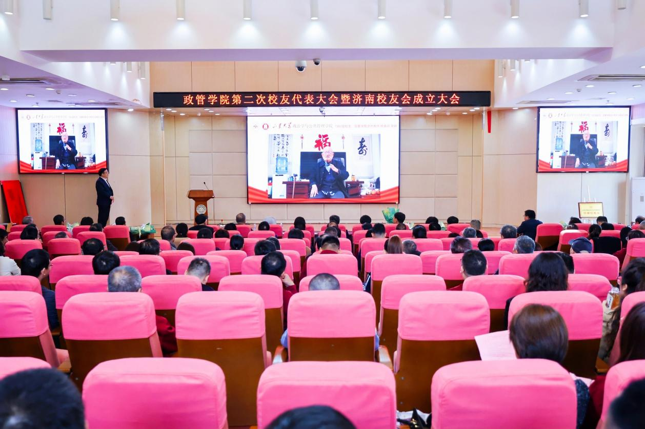 领导老师参加大会,1981、1991、2001、2011级等各年级的两百余名校友齐聚母校,共同见证这一重要时刻,畅叙深情厚谊,共谱发展新篇。活动期间,校友们重访中心校区文史楼、洪家楼校区1号楼等昔日课堂,重温求学记忆,感受校园新貌。