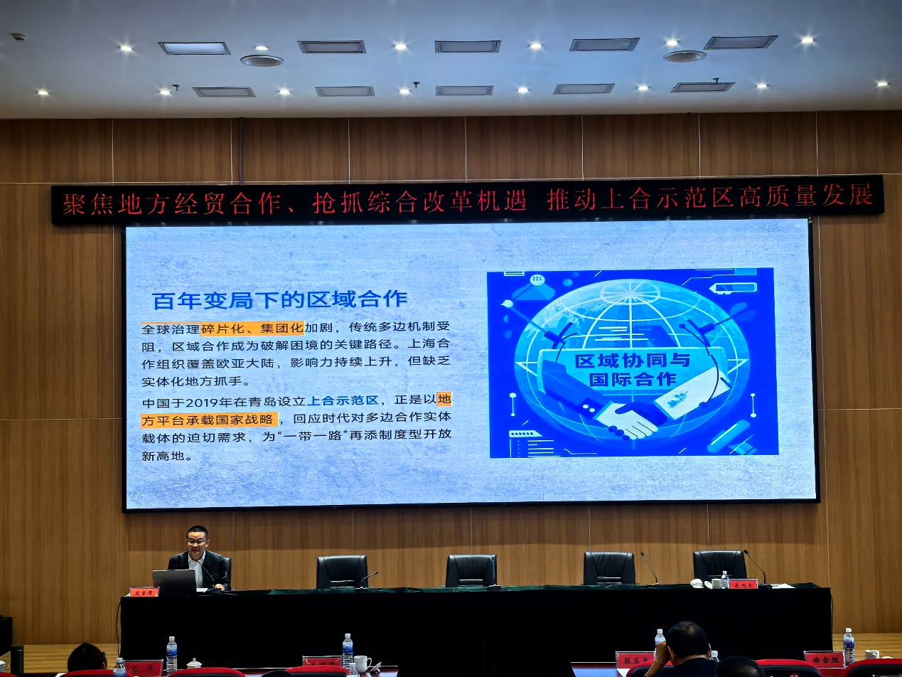 )主办的“聚焦地方经贸合作、抢抓综合改革机遇推动上合示范区高质量发展研讨会”在青岛胶州举行。山东大学特聘教授、泰山学者特聘专家、上海合作组织研究院执行院长盛力应邀出席。