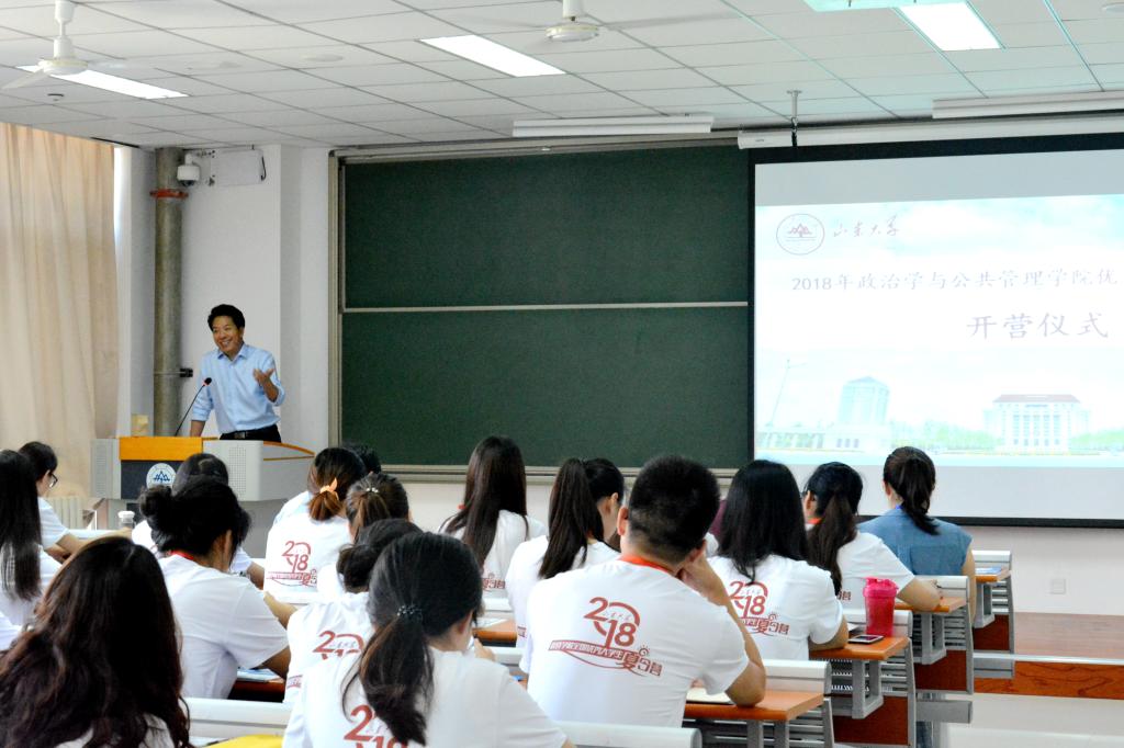 开营仪式上,曹现强对来自全国重点高校的优秀大学生营员来到“碧海蓝天、绿树萦绕、红楼尽显”的山东大学青岛校区表示欢迎,并对校区和足球比分90