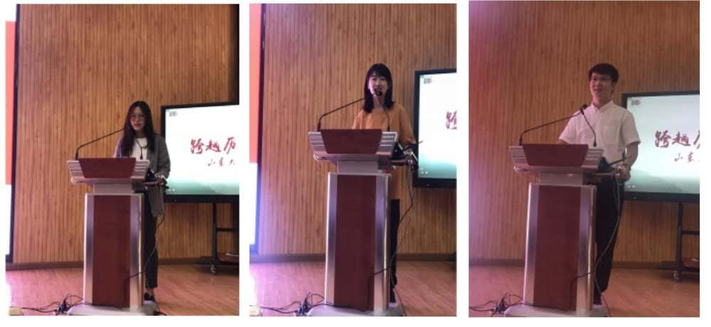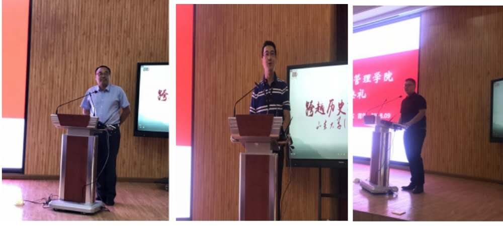 2018级本科新生王一丹代表全体本科新生发言,表示将以梦为马,不负韶华,秉承“学无止境、气有浩然”的校训,承担起山大人的责任,不辜负家长、老师、学校、社会的期望。2018级MPA代表吴双表达了时隔三年重回山大校园的激动之情,与大家分享了其作为选调生的经历,表示将继续学习,更好地服务于社会。2018级研究生代表博士生边琪代表研究生表示,“选择深造,学术研究便是初心,未来的路上要不断坚持,耐得住寂寞,做要做不忘初心的山大人”。
