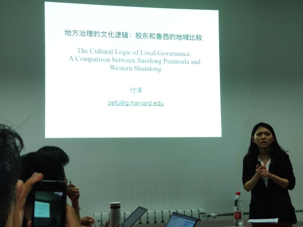 付泽博士首先从地域文化对政治治理的影响这一问题作为研究的出发点谈起,随后对政治分析中的文化因素与特征以及地方治理的路径与效率进行了文献综述,着重分析了文化观念与文化适应这两个自变量影响地方治理的文化逻辑机制。付泽博士通过采取把地方文化坐标简化为对传统权威的态度以及民间偶像的魅力来源这两个维度的方式来说明地方政府治理的施政偏好,并表示把外来党政干部是否对当地文化做出准确判断并对执政手段做出正确方向的调整作为其研究的核心自变量,以此为根据形成了从本地文化出发思考到外来干部对当地文化的判断最后到干部执政方式的文化型调整的整个理论假设。