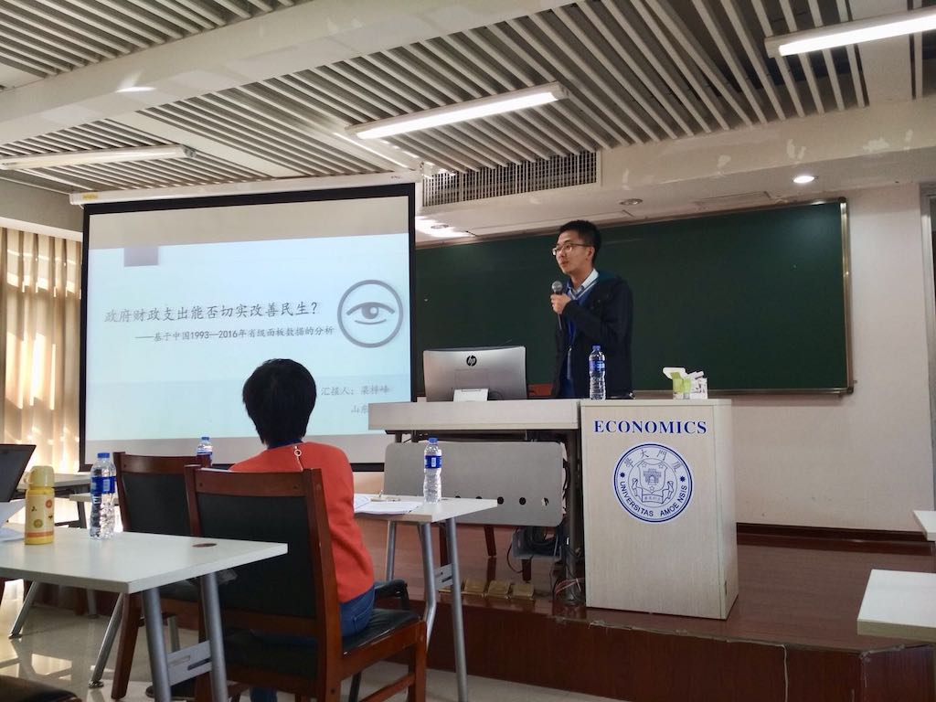 校长奖学金单项(研究创新)获奖者梁梓峰来自2015级行政管理专业,其在学术创新领域成果显著。以第一作者撰写的《Improvement of Eco-efficiency in China——A Comparison of mandatory and hybrid environmental policy instruments》文章被JCR 2区SSCI期刊录用刊发;撰写的《政府财政支出能否切实改善民生?——基于中国1993—2016年省级面板数据的分析》和《城市封闭式小区开放困境与出路的探讨——以济南市部分小区为例》分别被厦门大学“首届中国计量经济学者论坛” 和华东理工大学“公共服务与城市治理”国际学术研讨会录用,并作为唯一的本科生在研讨会上宣读论文。除此之外,梁梓峰还主持校级科创基金项目一项,参与本科生指导教师的课题研究,于院刊《青年政治》发表文章一篇,于今年九月成功取得了清华大学公共管理足球比分90