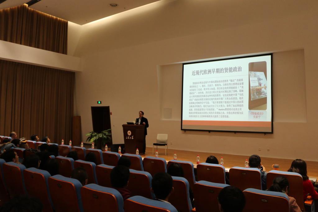 Hankins教授接下来探讨为什么贤能政治(美德政治)在西方失败,而在中国得以延续并成功?中国的儒家政治传统经过科举考试等制度得以延续下来,而西方的文艺复兴时期的美德政治在十七世纪被宪制、权利本位和契约论等取代,即在西方惩恶成为主题,而扬善被忽略,东西方走上了两条不同的道路。Hankins教授旁征博引,论证古今中西,思维的广阔、研究之精深获得了在座学生的称赞。
