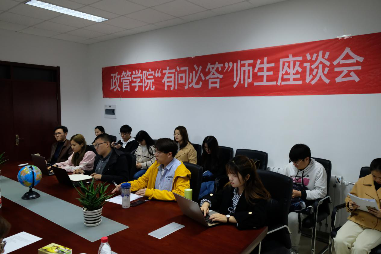 “有问必答”师生座谈会在青岛校区举办。副院长李济时、赵启鹏参加座谈会,党委副书记桑伟林主持座谈会。葛双林老师、于玲老师和16、17、18级15名学生代表参加座谈。