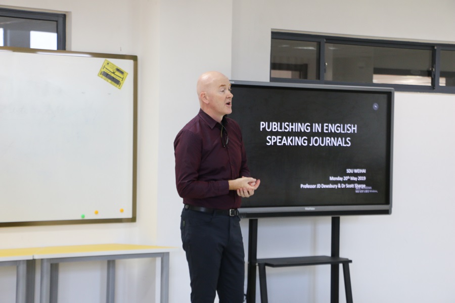 在讲座中,JD Dewsbury教授分别从如何选择适合的期刊进行投稿、投稿论文的黄金法则、近期社会科学领域的热门论题、投稿结果与修改四方面进行详细的分析,向在座师生提出极具参考性的论文修改与投稿的详尽建议。