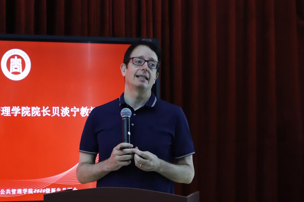 在推进学科交叉融合中作出的努力与成果。随后,他鼓励同学们在入学的新阶段确立追求卓越的决心与习惯,表达了对于同学们成为正直有爱的政管人的希望。
