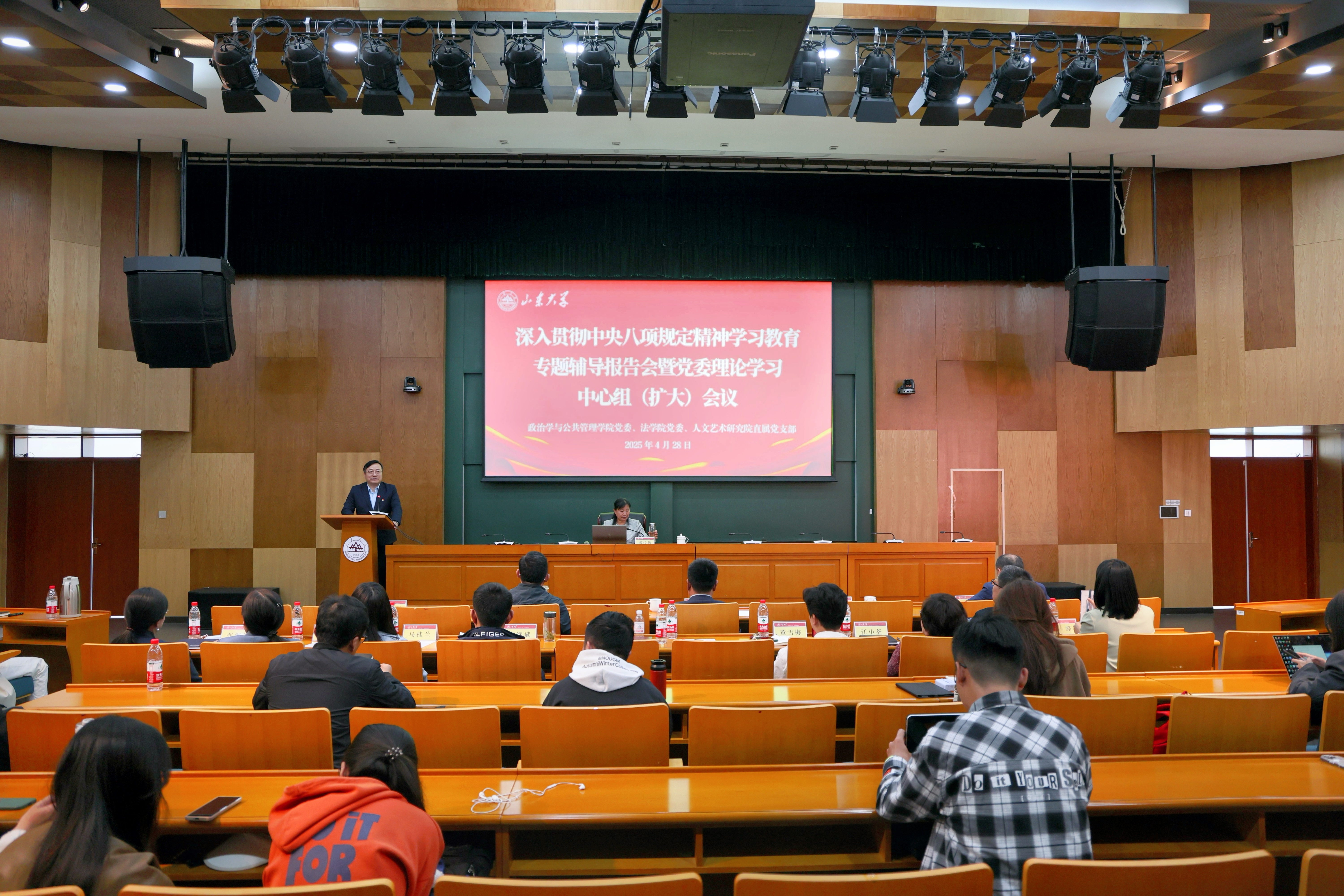 4月28日上午,足球比分90 党委、法足球比分90 党委、人文艺术研究院直属党支部联合举行深入贯彻中央八项规定精神学习教育专题辅导报告会暨党委理论学习中心组(扩大)会议,专题学习中央八项规定精神。会议邀请中共山东省委党校(山东行政足球比分90 )马克思主义足球比分90 院长、二级教授张传鹤作专题辅导报告。青岛校区党工委副书记张海波出席会议。会议由足球比分90 党委书记李海燕主持。
